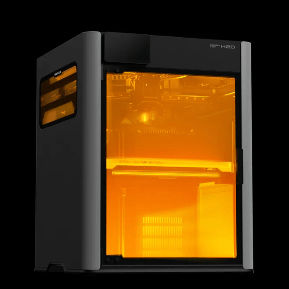 با حجم ساخت قابلتوجه ۳۵۰ × ۳۲۰ × ۳۲۵ میلیمتر، H2D فضایی فراهم میکند که پروژههای بزرگتر یا چند قطعه در یک چاپ را ممکن میسازد — یک ارتقاء مهم نسبت به مدلهای قبلی.