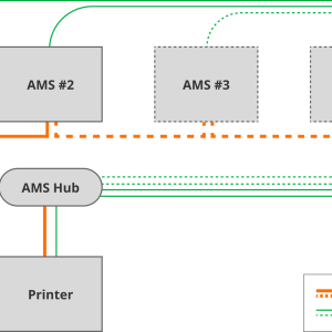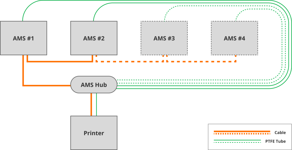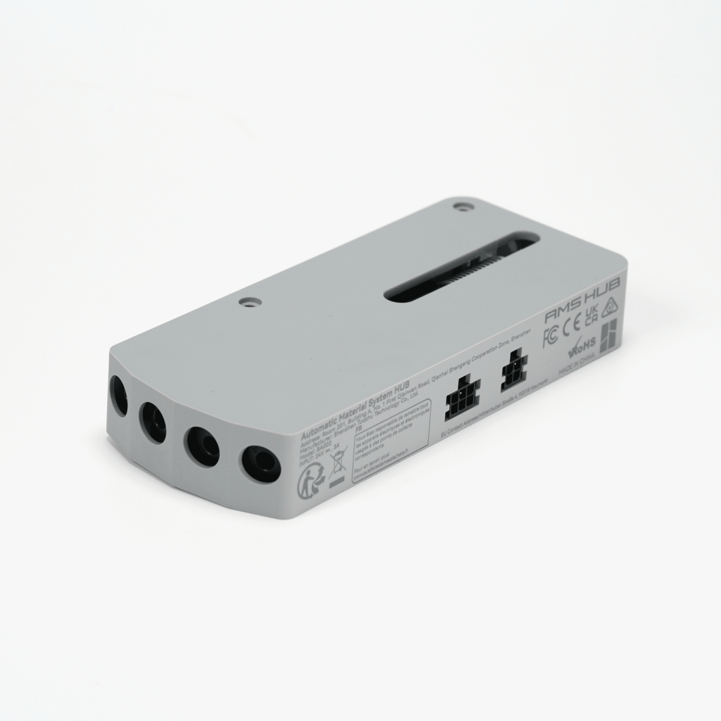 هاب اتصال AMS یک قطعه کلیدی در این سیستم است که با اتصال و توزیع فیلامنت‌ها از مخازن مختلف به اکسترودر یا هات‌اند، عملکرد صحیح و هماهنگ چاپ را تضمین می‌کند. این هاب به عنوان نقطه مرکزی ارتباط میان بخش‌های مختلف سیستم AMS عمل می‌کند و باعث می‌شود تا تغییرات سریع بین مواد مختلف امکان‌پذیر شود.